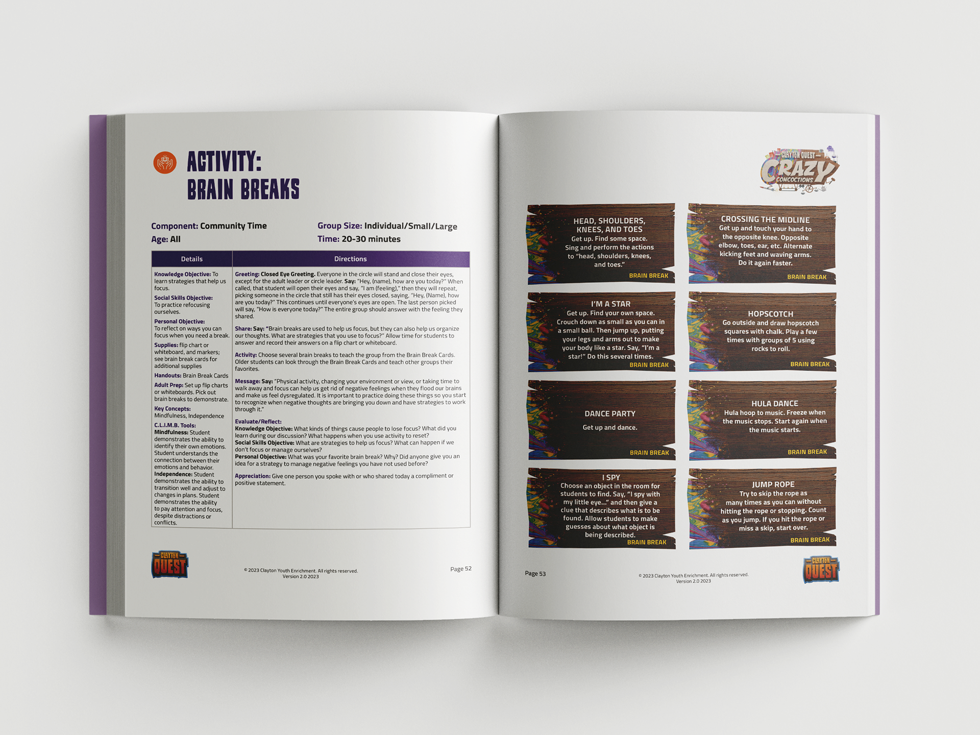 Clayton Youth Enrichment offers a dynamic curriculum for after-school care that teaches students essential life skills to foster their social, emotional, and educational development. The Clayton team realized they needed to overhaul their existing content and develop a proprietary curriculum, complete with original learning tools, graphics, and activities, to provide the most value and open the door for grant opportunities.